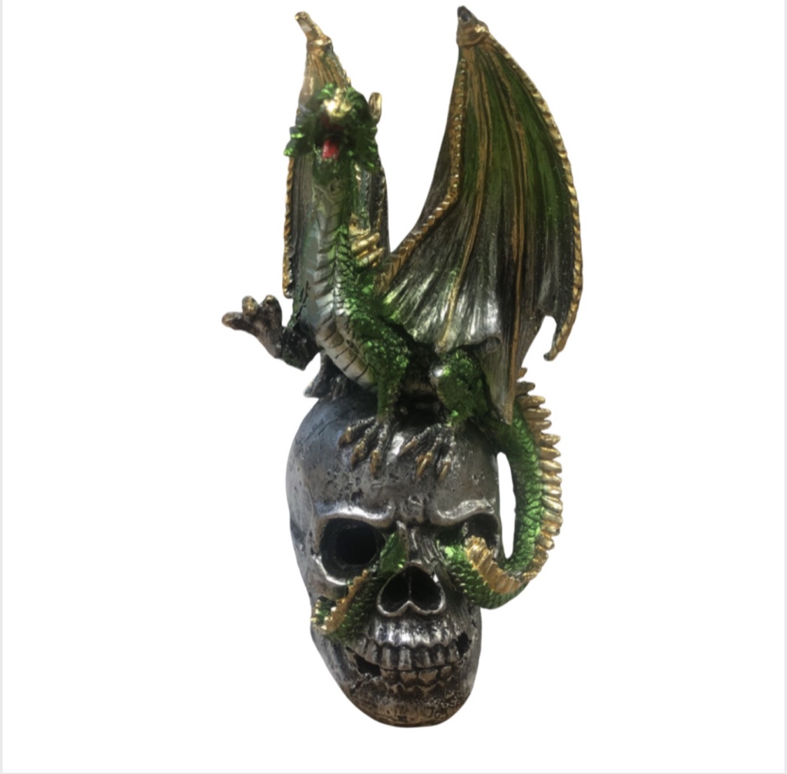 Be the first to review “SACRED Silver Skull Green Dragon On Skull Light Up Ornament (17cm)”